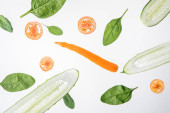 Widok z góry świeżych warzyw w plasterki i czarnego pieprzem na białym tle