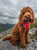 Zdjęcie "Czerwony cockapoo siedzi na skale " może być wykorzystywane do celów osobistych i komercyjnych zgodnie z warunkami zakupionej licencji Royalty-free. Obraz jest dostępny do pobrania w jakości wysokiej rozdzielczości do 5760x3840.