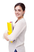 kobiet student szczęśliwy kciuk, na białym tle na białym tle
