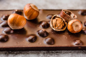 Czekolada z orzechowym paskiem. Orzechy i tło czekoladowe. Przygotow
