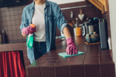 Zdjęcie "Młoda uśmiechnięta kobieta myjąca stół w domu" może być wykorzystywane do celów osobistych i komercyjnych zgodnie z warunkami zakupionej licencji Royalty-free. Obraz jest dostępny do pobrania w jakości wysokiej rozdzielczości do 5760x3840.
