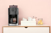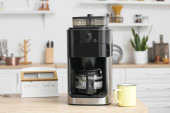 Zdjęcie "Nowoczesny ekspres do kawy na stole w kuchni" może być wykorzystywane do celów osobistych i komercyjnych zgodnie z warunkami zakupionej licencji Royalty-free. Obraz jest dostępny do pobrania w jakości wysokiej rozdzielczości do 5760x3840.