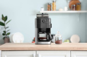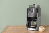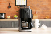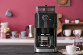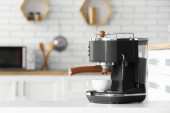 Zdjęcie "Nowoczesny ekspres do kawy na stole w kuchni" może być wykorzystywane do celów osobistych i komercyjnych zgodnie z warunkami zakupionej licencji Royalty-free. Obraz jest dostępny do pobrania w jakości wysokiej rozdzielczości do 5760x3840.