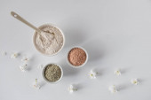 wykadrowany widok kobiety przygotowującej kosmetyki organiczne ze składników na białym tle