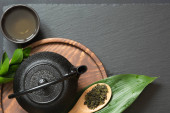 Zdjęcie "Ceremonia ekologiczna zielona herbata Matcha na czarnym stole. Widok z góry. Miejsce na tekst." może być wykorzystywane do celów osobistych i komercyjnych zgodnie z warunkami zakupionej licencji Royalty-free. Obraz jest dostępny do pobrania w jakości wysokiej rozdzielczości do 5760x3840.