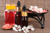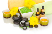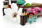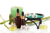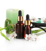 Spa kompozycja z olejkami aromatycznymi na białym tle