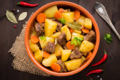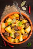 Zdjęcie "duszone mięsa gulasz z wołowiny i warzyw w puli" może być wykorzystywane do celów osobistych i komercyjnych zgodnie z warunkami zakupionej licencji Royalty-free. Obraz jest dostępny do pobrania w jakości wysokiej rozdzielczości do 5760x3840.