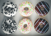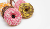 Pyszne pączki na jasnym tle pastelowych kolorów.