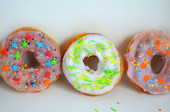 Pyszne pączki na jasnym tle pastelowych kolorów.