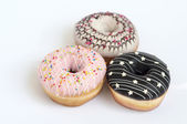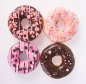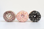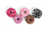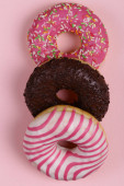 Smaczne pączki na różowym tle. Narodowy Dzień pączki.