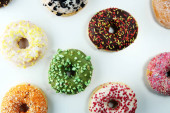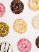 Smaczne pączki na różowym tle. Narodowy Dzień pączki.
