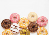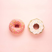 Smaczne pączki na różowym tle. Narodowy Dzień pączki.