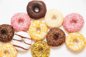 Smaczne pączki na różowym tle. Narodowy Dzień pączki.