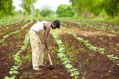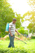 worker spraying at field.