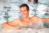 Pewny siebie portret młodego mężczyzny na żaglówkę.