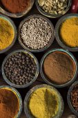asortyment przypraw na drewnianym tle, pionowy widok z góry