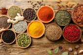 Zdjęcie "asortyment przypraw na drewnianym tle, pionowy widok z góry" może być wykorzystywane do celów osobistych i komercyjnych zgodnie z warunkami zakupionej licencji Royalty-free. Obraz jest dostępny do pobrania w jakości wysokiej rozdzielczości do 5760x3840.