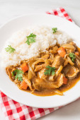 Japoński curry ryż z plasterki wieprzowiny, marchwi i cebuli