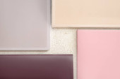 Widok z góry drewnianej tacy i sklejki na brązowym