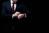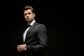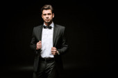 poważny biznesmen w kolorze patrząc na kamerę na czarno