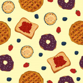 Bez szwu wektor wzór z kawaii śniadanie rzeczy na białym tle idealne do pakowania tła papieru itp.