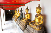 Budda w świątyni Wat Pho sekwencyjne ładnie w Bangkoku, Tajlandia.