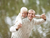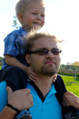 szczęśliwy ojciec i mała dziewczynka w ogrodzie