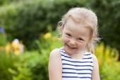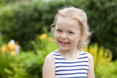 portret uśmiechający się małej dziewczynki w ogrodzie