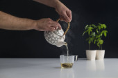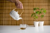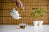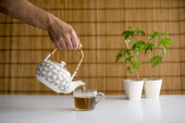 Stół bambusowy z roślin marihuany w ceramiki. Ręczne nalewanie gorącej C