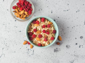 Zdjęcie "Domowe Granola musli ze składnikami, zdrowe jedzenie na śniadanie" może być wykorzystywane do celów osobistych i komercyjnych zgodnie z warunkami zakupionej licencji Royalty-free. Obraz jest dostępny do pobrania w jakości wysokiej rozdzielczości do 5760x3840.