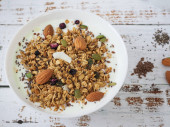 Domowe Granola musli ze składnikami, zdrowe jedzenie na śniadanie
