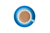 Pojedynczy niebieski Kubek ceramiczny na napoje lub inne produkty płynne izolowane białym tłem