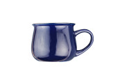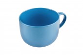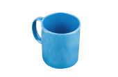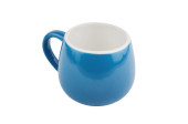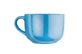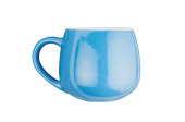 Pojedynczy niebieski pusty Kubek ceramiczny na napoje lub inne produkty płynne z kółkiem na białym tle