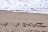 inspirujące znaki, tekst, zdjęcia na piaskowym wybrzeżu. Stopy stoją blisko serca ze strzałą. Letnia plaża piaskowa wakacje inspirują do podróży w Walentynki. Romantyczna podróż dla par lub rodzinnych wakacji. Znak relaksu Kocham cię na żółtym piasku.