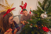 Zdjęcie "Ojciec i córka korzystających na Boże Narodzenie/nowy rok czas." może być wykorzystywane do celów osobistych i komercyjnych zgodnie z warunkami zakupionej licencji Royalty-free. Obraz jest dostępny do pobrania w jakości wysokiej rozdzielczości do 5760x3840.