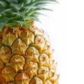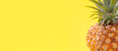Piękne świeże ananasy izolowane na jasnym żółtym tle, lato sezonowych owoców projekt koncepcji wzór, przestrzeń kopiowania, zbliżenie