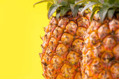 Zdjęcie "Piękne świeże ananasy izolowane na jasnym żółtym tle, lato sezonowych owoców projekt koncepcji wzór, przestrzeń kopiowania, zbliżenie" może być wykorzystywane do celów osobistych i komercyjnych zgodnie z warunkami zakupionej licencji Royalty-free. Obraz jest dostępny do pobrania w jakości wysokiej rozdzielczości do 5760x3840.