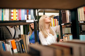 Dziewczyna stoi w pobliżu szklanej ścianie i patrzy w książce, Notebook. Widać jej odbicie w świetle wieczornym. Spokojna i piękna Europejska.