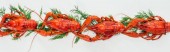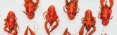 Widok z góry na czerwone homary, plasterki cytryny i zielone zioła na białym tle