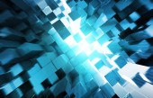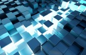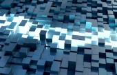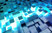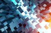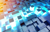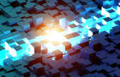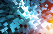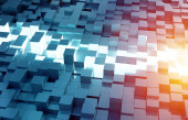 Świecące czarny niebieski i kwadratów pomarańczowy tło wzór 3d rend