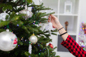 Kobieta, przygotowanie błyszczący dekoracji na Boże Narodzenie / Sylwester.