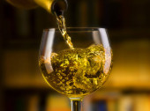 białe wino wylewa się we wszystkich formach, tło biblioteczne