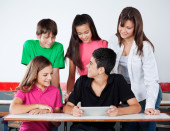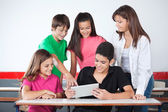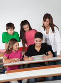 nastoletnie uczniak wyświetlone tabletki do kolegów na biurko