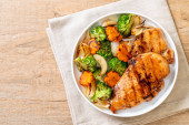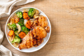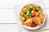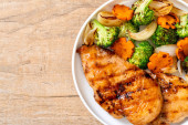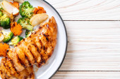 Zdjęcie "griled steak pierś z kurczaka z warzywami" może być wykorzystywane do celów osobistych i komercyjnych zgodnie z warunkami zakupionej licencji Royalty-free. Obraz jest dostępny do pobrania w jakości wysokiej rozdzielczości do 5760x3840.
