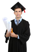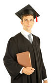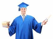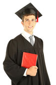 ukończeniu młody człowiek z książki, na białym tle