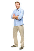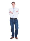 szczęśliwy biznesmen założonymi na białym tle na białym tle