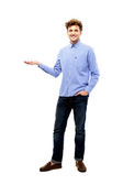 szczęśliwy człowiek Wyświetlono pusta kopia portret białe tło
