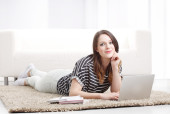 Zdjęcie "kobieta siedzi i korzysta z laptopa" może być wykorzystywane do celów osobistych i komercyjnych zgodnie z warunkami zakupionej licencji Royalty-free. Obraz jest dostępny do pobrania w jakości wysokiej rozdzielczości do 5760x3840.
