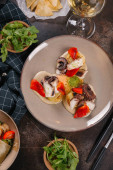 Pieczona bakłażan i warzywa podawane na białej płytce