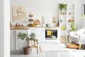 Zdjęcie "Wnętrze nowoczesnej komfortowej kuchni" może być wykorzystywane do celów osobistych i komercyjnych zgodnie z warunkami zakupionej licencji Royalty-free. Obraz jest dostępny do pobrania w jakości wysokiej rozdzielczości do 5760x3840.